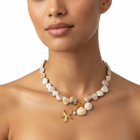 Collar Perla del Mar en Dorado con Nacar para Mujer en Acero Inoxidable | Vanytel
