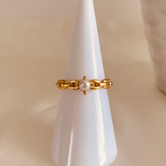 Hailey Ring, Women's Adjustable One Pearl Gold Stainless Steel Ring