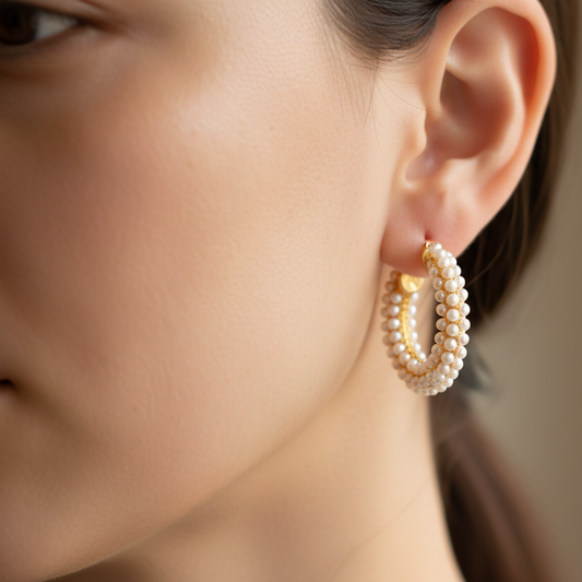 Ana Maria Hoops – Aretes de Aro con Perlas en Acero Inoxidable Dorado | Vanytel