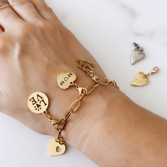 Pulsera Mis Amores Aro Dorados con Dijes de Corazón para Mujer en Acero Inoxidable | Vanytel