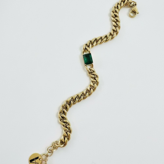 Esme Bracelet, Green Zirconia & Gold Satinless Steel