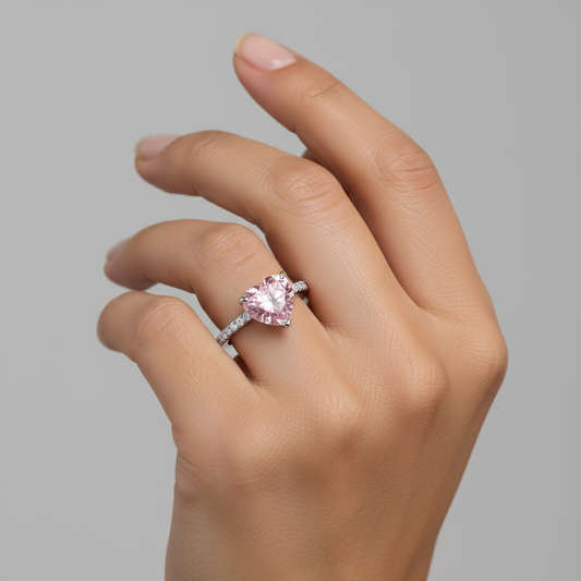 Anillo Corazón Rosa en Plata Esterlina 925 para Mujer | Vanytel