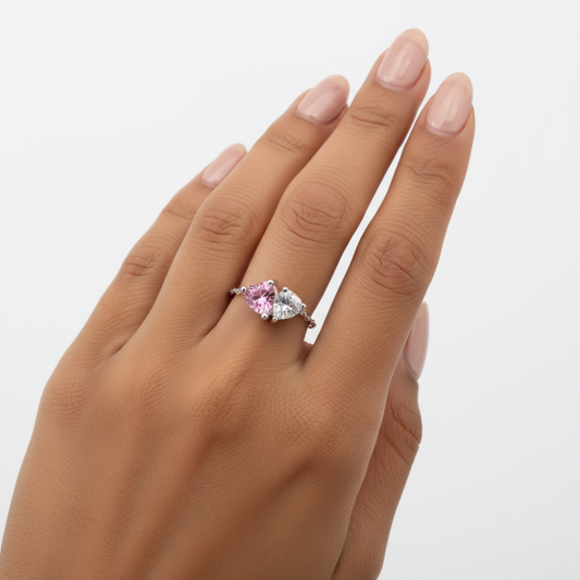 Anillo Pink Heart & Icing Ajustable en Plata Esterlina 925 para Mujer | Vanytel