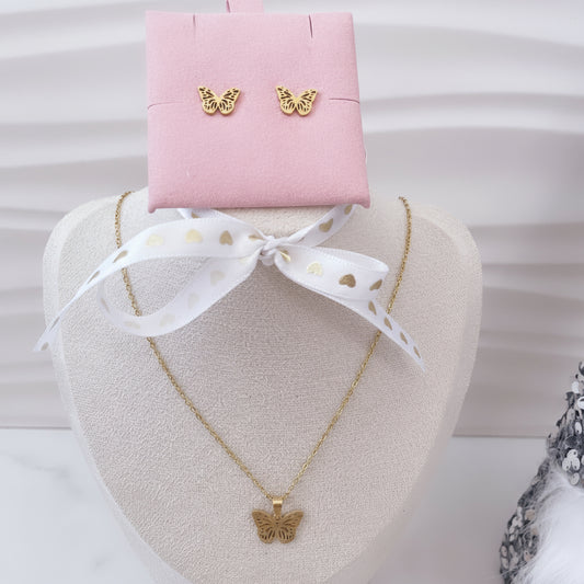 Set de Collar y Aretes en Mariposas para Mujer en Acero Inoxidable | Vanytel