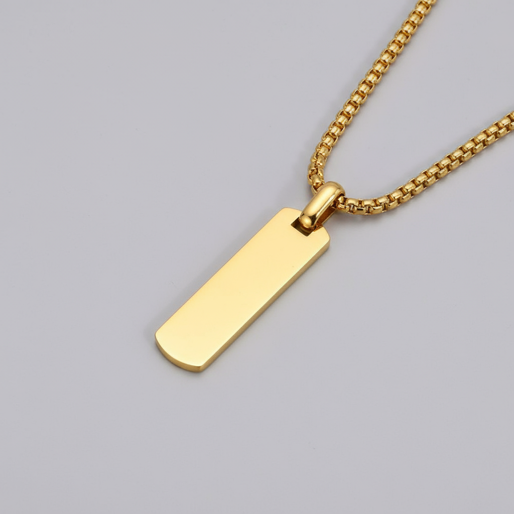 Destácate con nuestro elegante collar de estilo caja para hombres, complementado por un hermoso colgante de barra. Este accesorio de moda añade un toque de masculinidad a tu estilo, perfecto para combinar con una camiseta o una camiseta y chaqueta. ¡Haz una declaración de moda con esta cadena imprescindible!