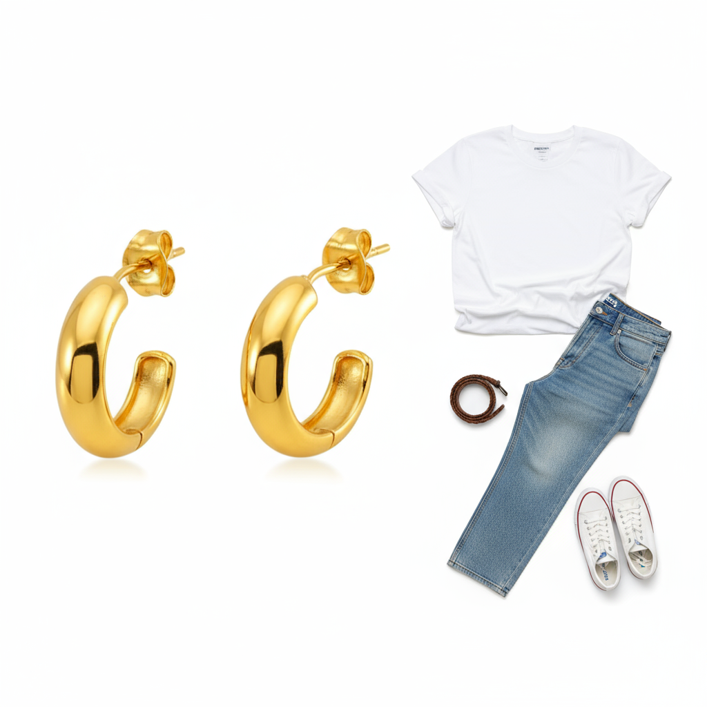 Los aros dorados de Vanytel combinan elegancia, ligereza y un brillo clásico que realza cualquier estilo.